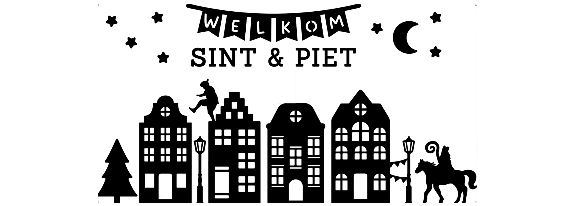Herbruikbare raamsticker grachtenpand – Welkom Sint en Piet