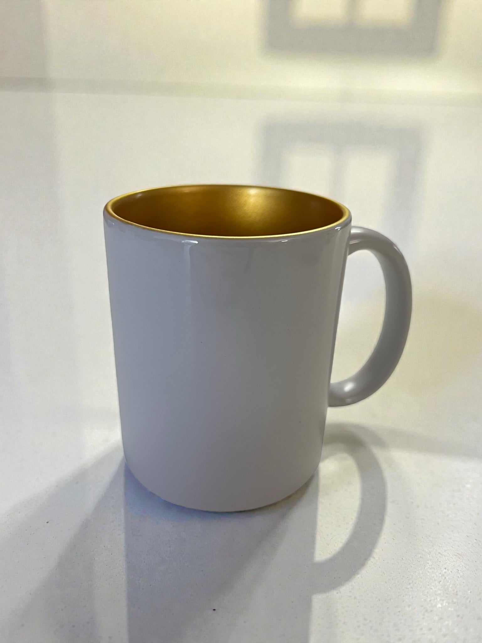 Onze mokken zijn verkrijgbaar met verschillende kleuren binnenkant (rood, goud of zilver) en hebben een comfortabele witte greep. Dankzij de hoogwaardige sublimatieprint blijft jouw ontwerp jarenlang mooi.